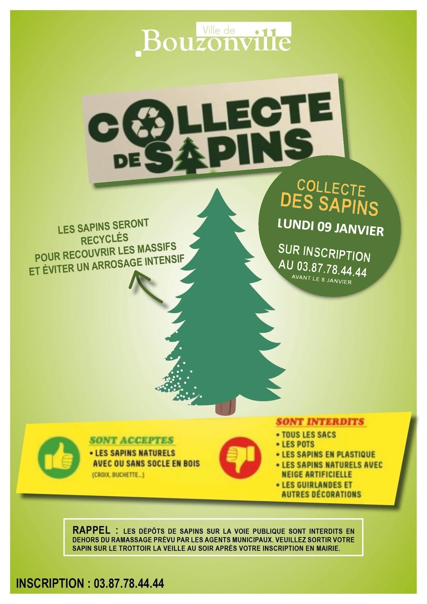 Il est rappelé que le dépôt de sapins sur la voie publique en dehors du jour du collecte est interdit.